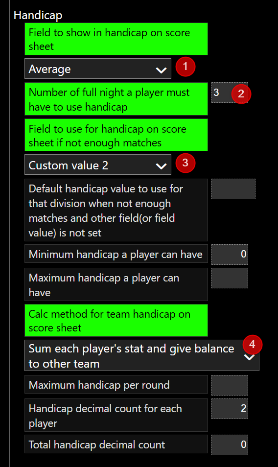 Default handicap value to use for that division when not enough matches and other field (or field value) is not set