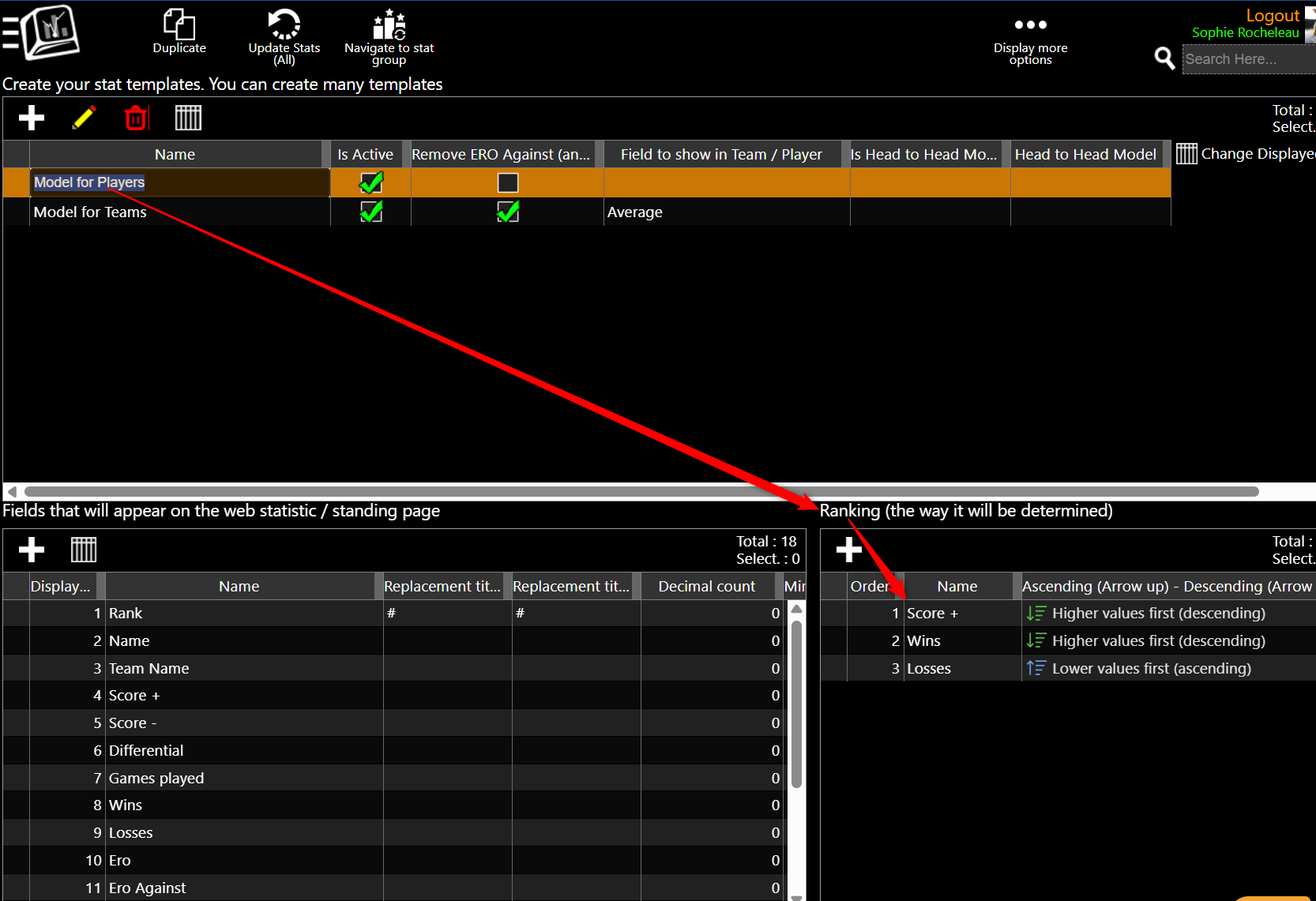 Select your Model for Teams and/or Model for Players, Choose what they are ranked by at the bottom right.